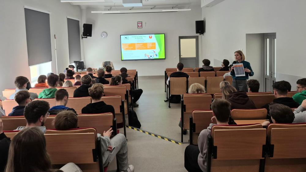 Uczniowie zostali zapoznani z aktualnymi prognozami zapotrzebowania na poszczególne zawody, opartymi na Barometrze Zawodów 2026.
